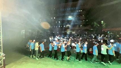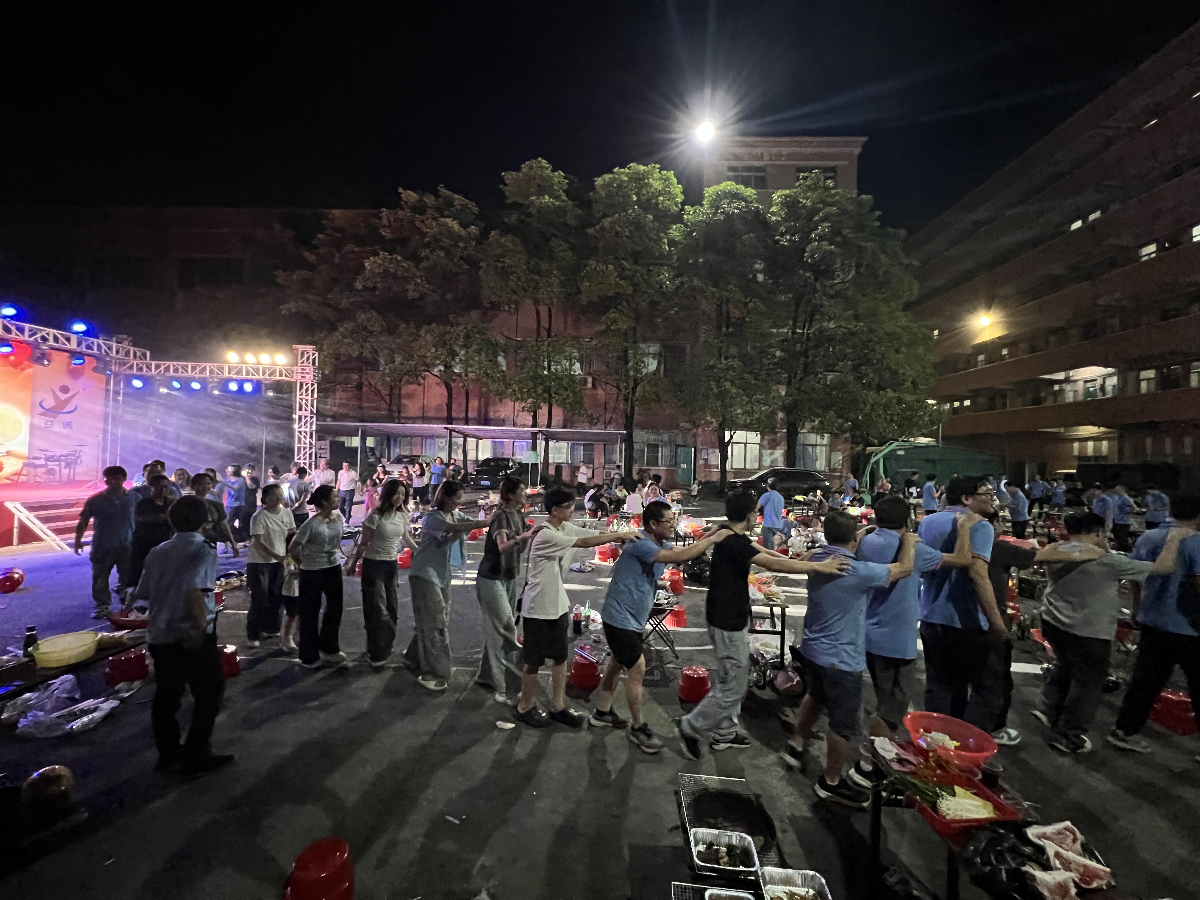 夜色漸濃,情誼愈深。隨著主持人一聲“開小火車啦!”,益誠家人們在笑聲和歡呼聲中迅速組成一條“長龍”,大家搭著肩,蜿蜒穿梭活動現(xiàn)場,載著喜悅奔向月光。