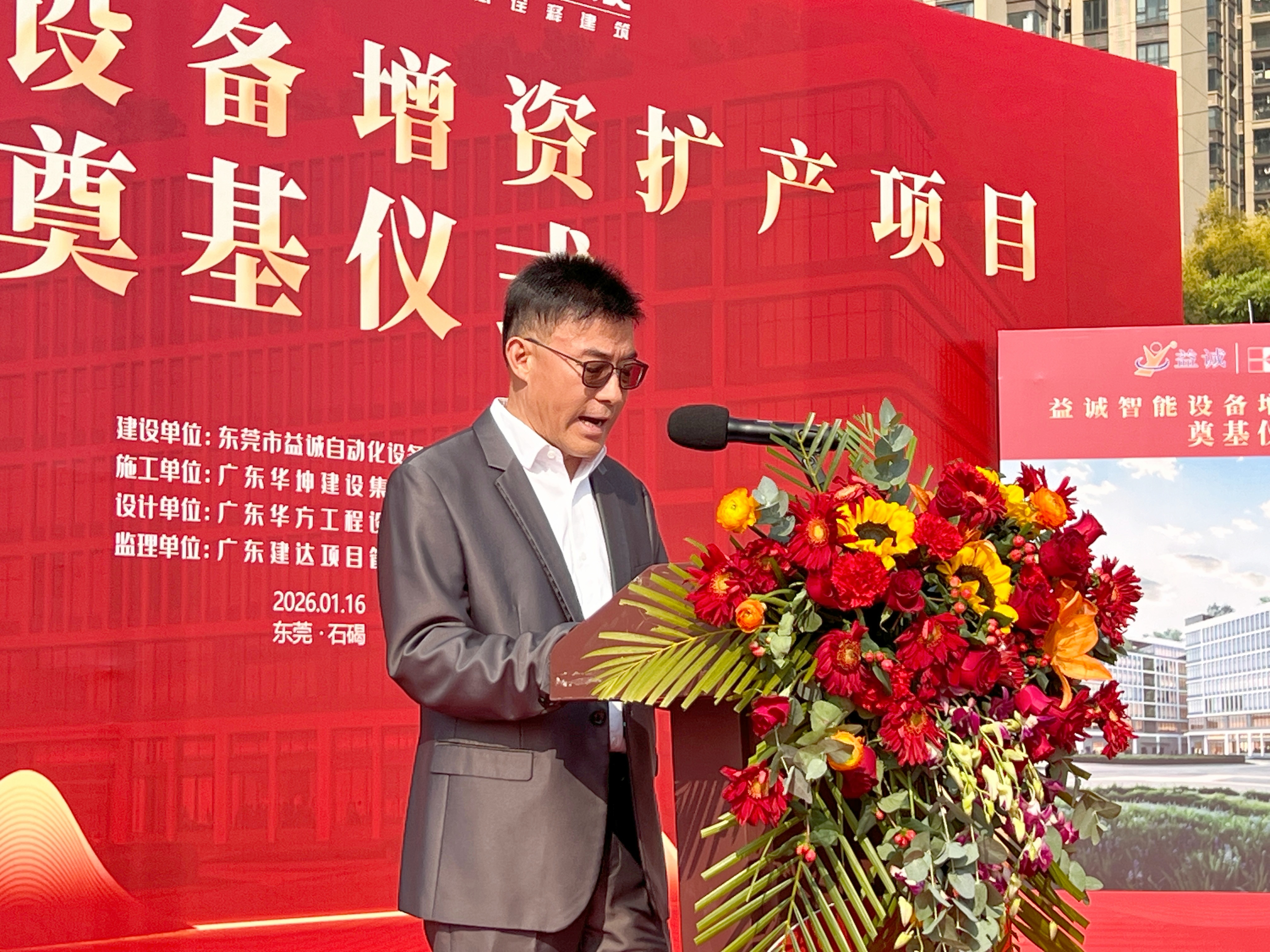 在奠基儀式上,益誠自動化董事長袁董的致詞情真意切。袁董滿懷感恩地表示,回首益誠在東莞奮斗的二十載,每一步成長都凝聚著全體益誠人的智慧與汗水,也離不開各界伙伴的支持。此次在石碣奠基,既體現(xiàn)益誠深耕東莞的堅定決心,更標(biāo)志著益誠從此在東莞擁有了屬于自己的家!